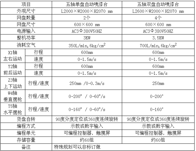 自動噴涂機技術參數(shù)