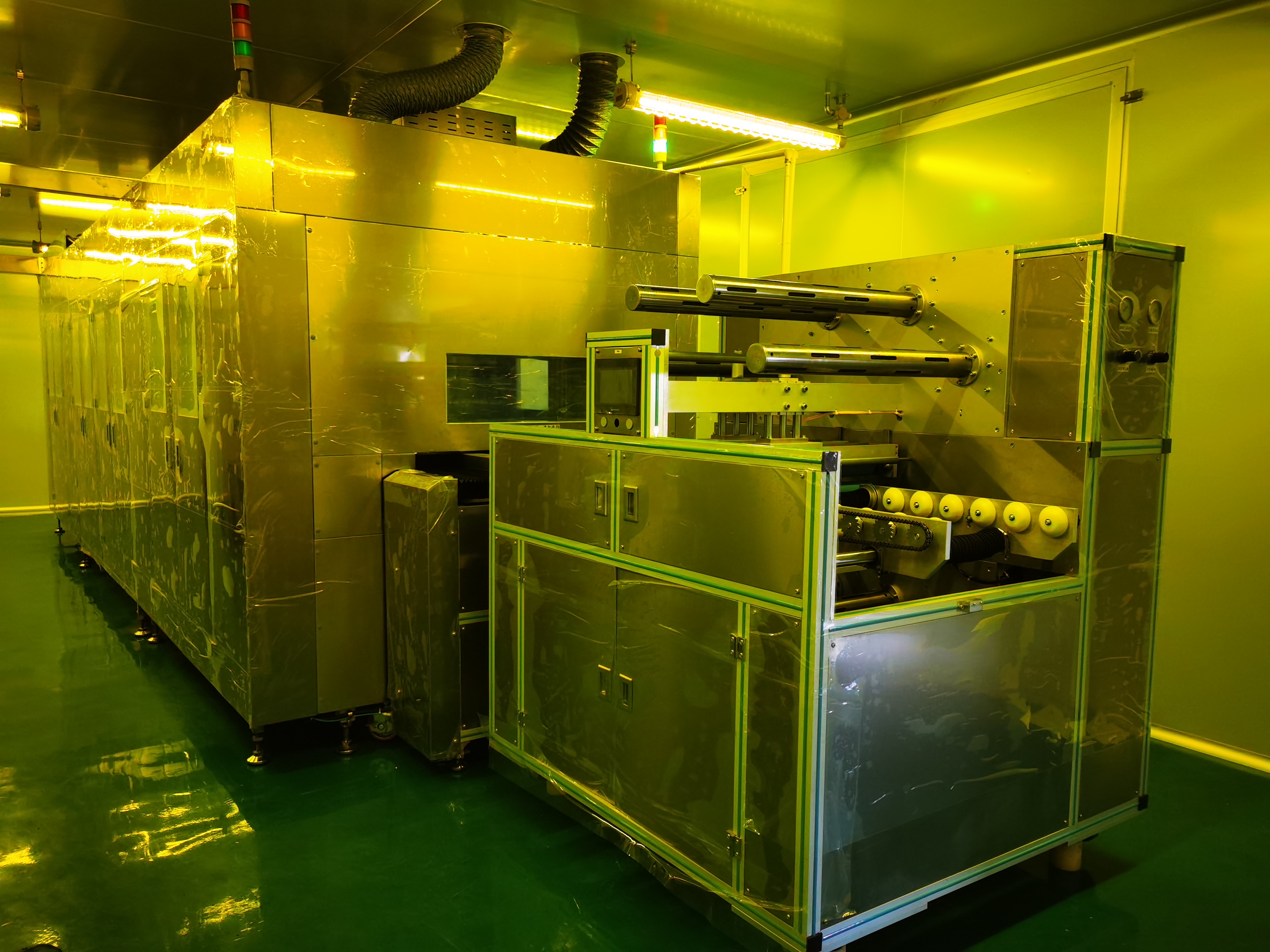 2、開啟機器后分別以2.5-4m/min的線速從入料口投入并試噴