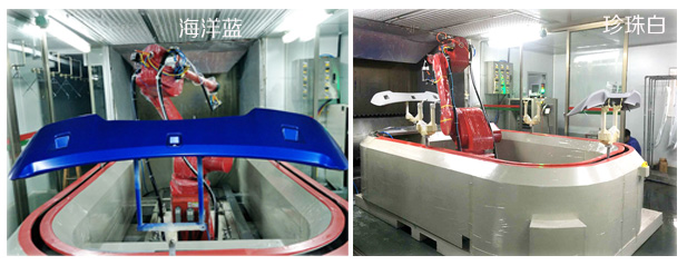 汽車尾翼機器人噴漆珍珠白、海洋藍(lán)